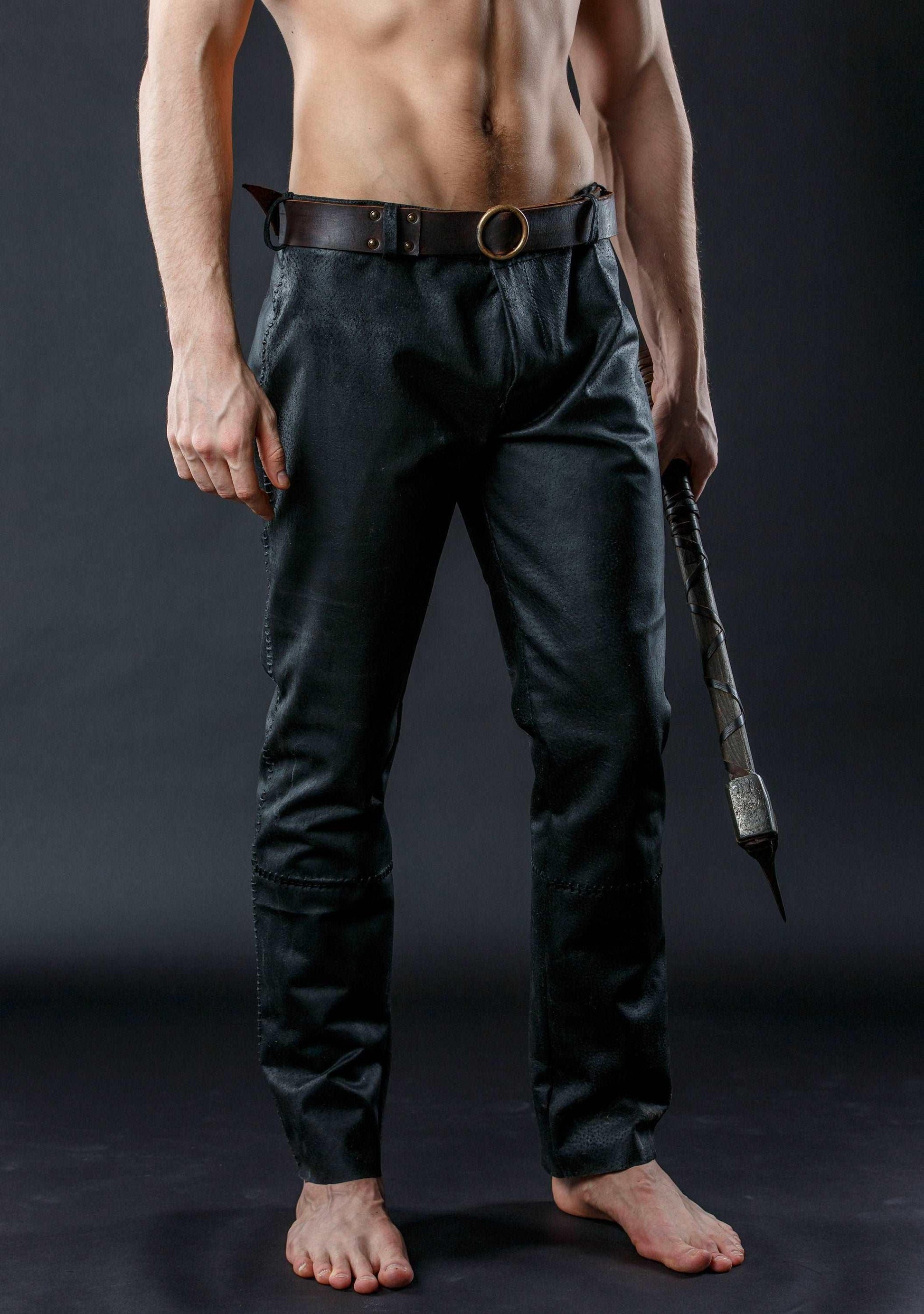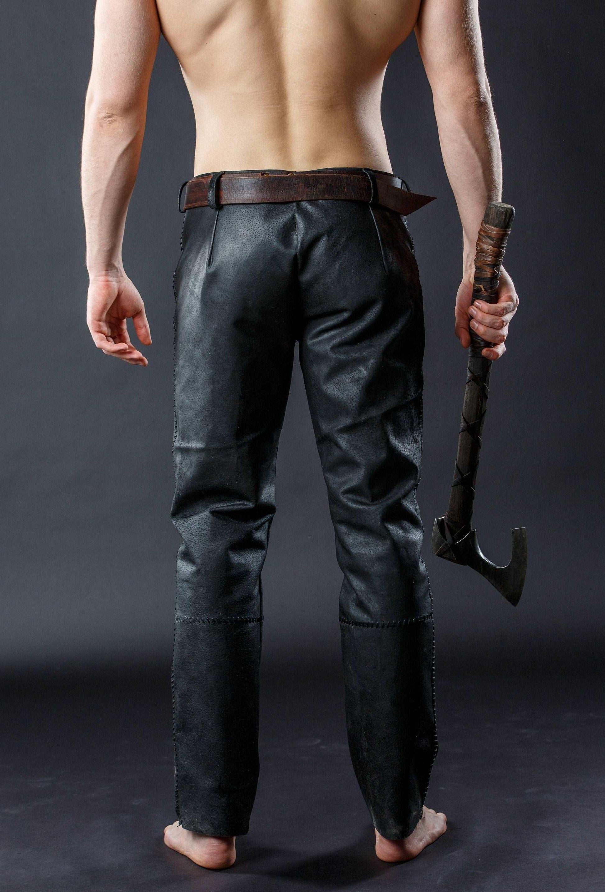 Viking leather pants for LARP or cosplay made by SokolArmory. Imagined and created by our leather team Аrtificial aging creates the effect of old age. Best gift for him!